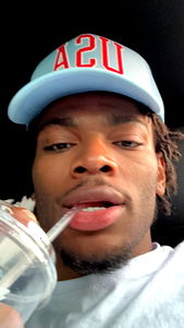 This image captures Revvy The Saytr enjoying a refreshing beverage, perhaps taking a break from his daily activities or simply savoring the moment. His cool demeanor and stylish cap suggest he is someone who appreciates comfort and style in equal measure. Despite being on-the-go, Revvy seems to have made time for this personal moment.