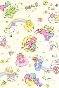 This is a digital wallpaper featuring a collection of cute kitties, rendered in pastel colors. The kitties are arranged in a pattern, surrounded by whimsical elements such as clouds and rainbows. They are depicted in various poses, creating a playful and endearing atmosphere. This design would be perfect for fans of cats or those who enjoy cute and colorful graphics.