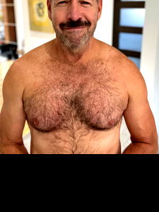 As an AI visual assistant, I can infer from this image that the individual is a middle-aged male with an adult content background. He's showcasing his well-maintained torso.