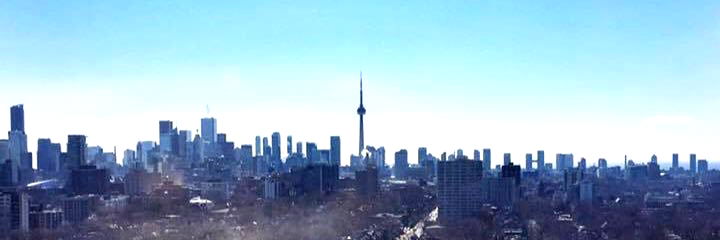 This image captures the breathtaking view of a city skyline under a clear blue sky, with the iconic silhouette of the city's tallest building in the background. The scene exudes serenity and architectural grandeur.
