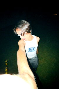 A captivating, nighttime photo captures the young adult Iker Reyes posing with an otherworldly light, likely taken in Xalapa. Iker is seen holding a phone, perhaps capturing a selfie or documenting his journey.