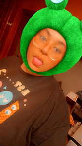 Ana Baby is captured in a moment of leisure, wearing a playful green frog costume and sporting oversized glasses. The photo exudes a sense of fun and relaxation, with Ana Baby comfortably seated at her gaming chair.