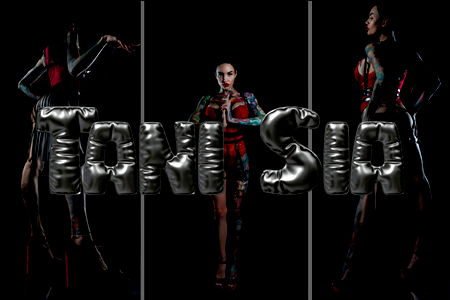 A striking and artistic nude portrait of a tattooed model, exuding confidence and allure. OnlyFans content creator.