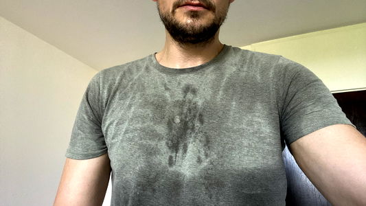 A male model in a gym setting demonstrates the effectiveness of the brand's sweatband apparel. He's wearing an olive green t-shirt and is captured mid-workout, showcasing the product's functionality. The image conveys a sense of fitness and performance. The background suggests he's in a home gym setup. OnlyFans model name: Inmotion Fitness
