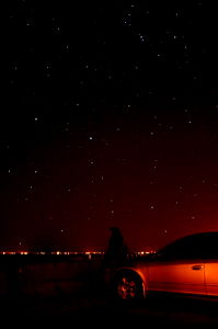 An individual in a blue baseball cap, taking a mirror selfie in a bathroom. He is looking to his left with a beard and mustache.