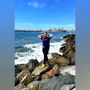 Fitness enthusiast Ixeductive showcasing flexibility and strength in a coastal setting, surrounded by the ocean's tranquility. The only fans model name is Ixeductive.