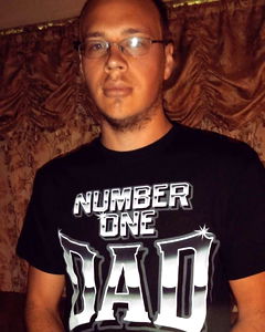 In the image, there's a man standing in front of a bathroom sink. He is holding his chest and seems to be capturing a selfie. The man appears to be in his 30s and is wearing a black and white shirt, with his hands placed on his chest. The background is brightly lit, and the room has a yellowish tone.