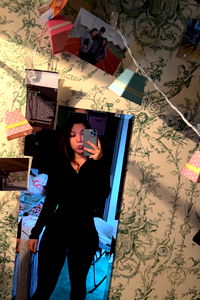 This is an indoor scene featuring a young woman, approximately 22 years old, with a strong presence. She is the main focus of the image, standing against a wall, her body angled slightly to show off her attire. She displays a confident demeanor and has an engaging face that draws the viewer's attention. She is dressed in a stylish ensemble, which seems to be the centerpiece of this photo shoot. The outfit, possibly a dress or lingerie, sits snugly at her waist, emphasizing her slender figure. The clothing extends down, covering her thigh and lending an aura of sophistication to her overall presence. Her shoulders are bare, adding a sensual touch to her look. The setting appears to be a professional studio, given the controlled lighting conditions and the plain wall backdrop. There's an air of elegance and grace about her, characteristic of a fashion model. Her pose suggests she is comfortable in front of the camera, a trait of a seasoned model.