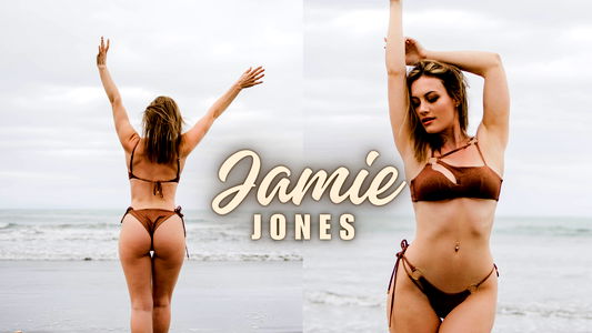 This image captures a young woman, around 23 years old, during an outdoor photoshoot on a beach. The woman is the main subject of the image, exuding confidence and elegance. She is wearing a fashionable ensemble that includes a brassiere and an undergarment, likely a part of a lingerie line. This ensemble accentuates her toned abdomen and navel, showcasing her model-like physique. She is posing on the ground, her face beautifully lit under the natural sunlight. Her facial expression is calm and serene, which adds a sense of tranquility to the scene. The beach setting provides a relaxed and natural backdrop, adding depth and context to the image. The woman also has a few fashion accessories that subtly complement her outfit, enhancing the overall aesthetic of the image. This image seems to be taken by a professional, possibly for a fashion or lifestyle magazine, considering the high quality and the model's pose and attire. The image beautifully blends fashion, nature, and the female form.