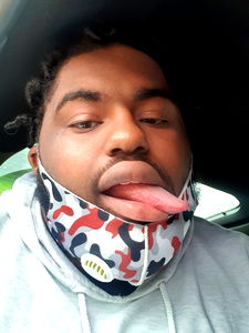 This is a humorous, photoshopped image featuring an individual posing as if they are driving while drowsy. The subject appears to be a man with a beard and dreadlocks, wearing a hoodie with a camouflage pattern and a bandana. He is making a playful gesture with his tongue sticking out, which adds to the comical effect of the image.