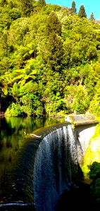 A muscular individual from New Zealand showcases his physique in front of a stunning waterfall, capturing the tranquility of nature and the passion for fitness.