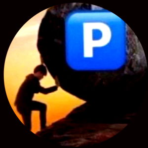 A humorous and thought-provoking image that uses the recognizable Google Chrome logo, featuring a man pushing a large rock labeled with 'P' for parking. The image resonates with social media users and has generated a buzz on various platforms. It successfully combines a real-life scenario with a brand logo to create a relatable message.