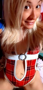 GoldyLockss is known for her avant-garde fashion choices, as seen in this image where she models a plaid bodysuit with an unconventional design element. Her unique style sets her apart from the crowd and demonstrates her creativity.