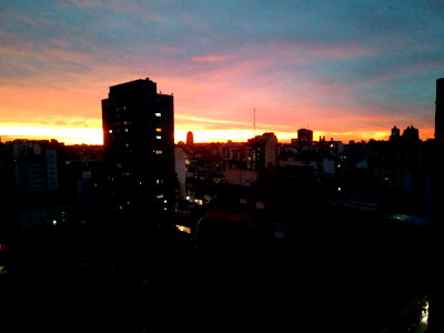 A mesmerizing view from a high vantage point, capturing the city during sunset. The skyline is bathed in hues of pink and orange, creating an enchanting scene that highlights the architectural beauty of the buildings below. This captivating image exudes serenity and tranquility.