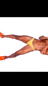 Jones Tamar, a Salvadoran model and content creator on OnlyFans, is seen confidently posing in an orange swimsuit. He has a fit physique and is showcasing his well-defined muscles.