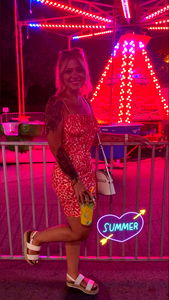 PhatAzzMami, a popular OnlyFans model, is posing confidently in front of a vibrant carnival booth. She's dressed casually for the event, and her playful demeanor adds to the festive atmosphere.