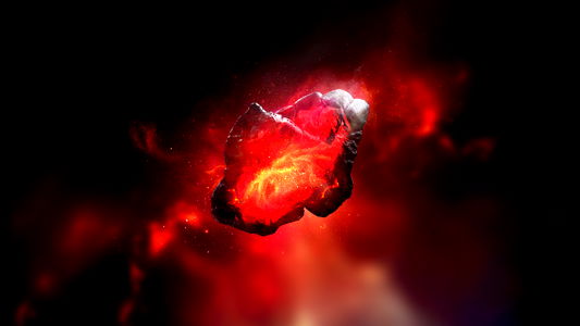 Vividly colored digital art piece featuring a dramatic nebula with fiery red hues, dark nebulas, and black space. This artwork is rich in details and conveys a sense of mystery and power.