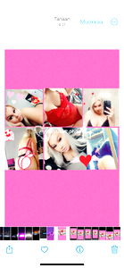 A young woman with blonde hair showcasing her pink lingerie. She is standing in a bathroom stall, holding her pose for the camera.