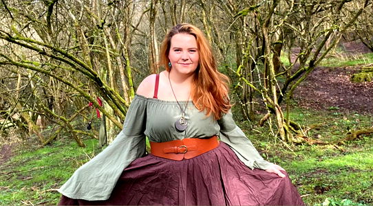 A woman posing in a lush green setting. The OnlyFans model name is JustKassey. She has long blonde hair and is wearing a top that leaves her cleavage visible. Her pose suggests confidence and beauty. From London UK.