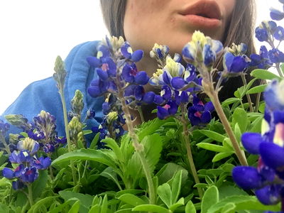 In this image, the stunning Onlyfans model Serina is captured in a moment of tranquility amidst a lush garden. She stands amongst blue flowers and plants, their vibrant hues contrasting beautifully against her surroundings. Her gaze is directed to the left, perhaps contemplating something off-camera. Serina's pose exudes elegance, adding to the serene atmosphere of this pastoral setting. The image also includes a plant with purple flowers in the foreground, further enhancing the natural beauty of the scene.
