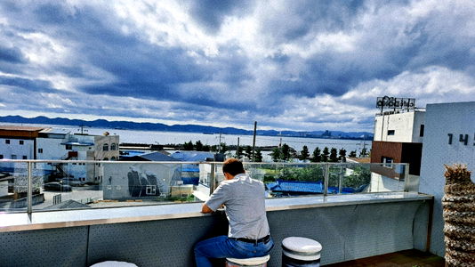 Join model ๊ทผํ ๋ฆฌ in the tranquil embrace of nature, overlooking a lush landscape at dusk. This serene and intimate scene captures the essence of peaceful solitude.