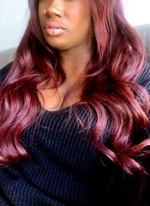 Exclusive content of a model with red hair and a deep cut neckline. She is sitting in front of the camera, showcasing her style.