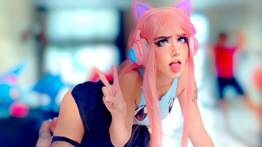 A digital illustration of a young, female pop star with pink hair and cat ears, dressed in a stylish outfit and holding a peace sign with her hand. She is striking a confident pose and appears to be enjoying herself.