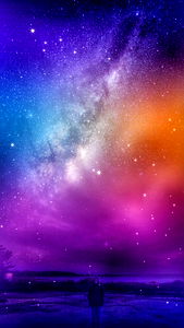 A captivating poster featuring a colorful, rainbow-streaked galaxy set against a dark purple backdrop. The art style is vibrant and detailed, perfect for space enthusiasts or as a decorative piece in a bedroom, office or living room.