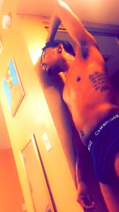Young adult male model with visible tattoos, short hair and a necklace. He is in a casual pose, wearing a chain around his neck. He appears to be posing for the camera, displaying a confident and relaxed demeanor.