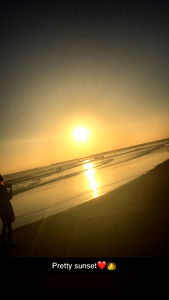 A stunning sunset over the ocean, captured by our OnlyFans model Kristy May from USA. The beach is empty, save for a single person watching the beautiful display of colors in the sky.