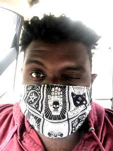 A Florida-based influencer donning a skull mask, a member of the Onlyfans community. Photo shows the individual in a car, with a strong and unique personal brand reflected through their image and style.