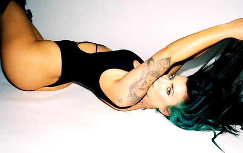 This photograph is a stunning portrayal of a woman's face, captured in a close-up shot during an indoor photo shoot. The subject of the image is a young woman, whose identity is reinforced by her feminine features, including long, dark eyelashes that frame her eyes. The woman's face is adorned with a variety of intricate tattoos, providing an edgy contrast to her soft features. The tattoos are inked in a range of bold designs that cover her skin, giving her a unique style and persona. The image has a high resolution, resulting in a sharp focus on the subject's face. The tattoos, in particular, are shown in great detail, allowing the viewer to appreciate the complexity of the designs. The woman's skin tone is natural and healthy, adding a touch of reality to this artistic portrayal. The lighting in the photograph casts a soft glow on the woman's face, highlighting her features and creating a beautiful composition. This photograph is not merely a picture; it's a bold statement of individuality and artistic expression.