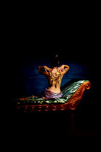 GODDESS CLEO exudes confidence and style as she poses for a striking fashion shoot. Her bold black outfit accentuates her physique and the intricate details of her tattoo. The stark contrast between the black attire and her surroundings creates an impactful visual.