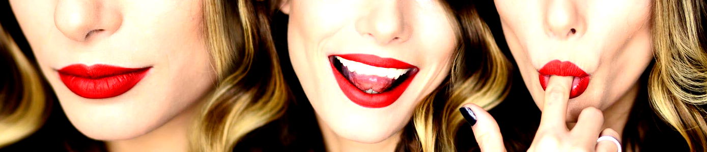 This image captures a stunning close-up of a fashionable lady exuding confidence and style. The central focus is her impeccably made-up face, highlighting her striking beauty. Her lips are glossed with a bold shade of lipstick, possibly a deep red or burgundy, adding a pop of color that complements her radiant smile. Her teeth are perfectly visible, looking pristine and white, while her tongue subtly peeks through. Her eyes are beautifully framed with long, defined eyelashes and meticulously applied eyeliner, further enhanced by a coat of mascara. Her skin looks flawless, hinting at a well-executed makeover. Her long, layered hair adds a touch of elegance to her overall look. In terms of accessories, she has chosen to adorn her ears with earrings and her neck with a necklace, likely adding a sparkle of jewellery to her outfit. Notably, she also has a body piercing, lending an edgy touch to her sophisticated look. The woman's throat and jawline are also visible in the image, adding to its close-up nature. Overall, the image exudes a sense of fashion-forward elegance and personal style.