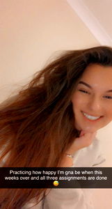 In this image, there's a young woman who is the main focal point. She exudes a radiant smile, lighting up her face and demonstrating a sense of joy and happiness. The smile reveals a warmth and friendliness, echoing her pleasant demeanor. The woman's skin is flawless and well-maintained, while her long, layered, brown hair cascades down her shoulders, adding to her feminine charm. The woman's eyebrows are perfectly shaped, enhancing the beauty of her eyes. Her lips are also noticeable, adding to her overall facial features. It seems like she might be wearing some light makeup to accentuate her natural beauty. She's wearing some type of clothing, though the specifics are not entirely clear from the image. In the background, there's a wall which provides a neutral backdrop, helping to draw attention to the woman. The image also contains some text and appears to be a screenshot of some sort, perhaps from a video call or social media post. The woman in the image could be described as a lady or a girl, denoting both her youth and sophistication.