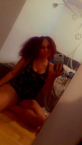 In the image, we see Leonna & Cherry, a model based out of Canada. They are seated on the floor, dressed in a swimsuit, and holding a phone, perhaps capturing their own moment. The background features a room with a bed and other personal items, suggesting a casual, homey environment.
