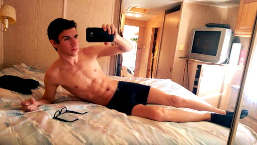 This image captures a young man in his mid-twenties in an indoor setting, likely against a wall. He has an athletic build with visible muscle definition, suggesting a consistent exercise routine. The man's chest and shoulders are bare, revealing his toned physique. His skin is smooth and well-maintained, giving an indication of good health and skincare routine. He is shirtless, which further accentuates his muscular build. Despite this, a hint of clothing is present, suggesting that he may be wearing something low-waisted just out of the frame or he may have just taken off his shirt. His neck and chin are also prominent in the picture, adding to his masculine features. The man's face is the main focus of the image. He has a youthful, distinct look, with well-defined facial features. There's no presence of any celebrity in the image or any distinct landmarks. Overall, the image presents an intimate portrait of a young, fit man showcasing his physique indoors.