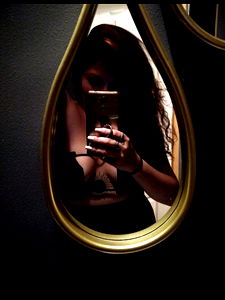 Colombian OnlyFans Model Lilium de Ferri shares a sensual selfie in front of a mirror with her phone camera. Her exotic beauty and alluring charm shine through the image.