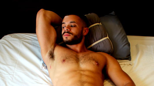 A strong and muscular male model with a flexed bicep, showcasing his fitness and gym-ready physique. Wearing a sleeveless tank top and posing confidently for the camera.