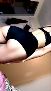 Featuring the stunning curves of Little Bear in a black lingerie, striking a pose against a rustic wall backdrop. The photoshoot showcases her confidence and beauty, with a focus on her fitness and physique.