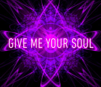An eye-catching purple and pink abstract background with a cosmic or nebulous design, accompanied by the text 'Give Me Your Soul'. The image conveys a sense of spirituality or a call to share one's inner self.
