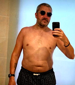 Manchester, England based model takes a mirror selfie in his workout tank top, capturing his daily routine. His toned physique and confident gaze are the highlight of this image.