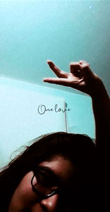 Luci, a young adult with an eye for fashion and a heart for music, is seen here in a candid moment. With a confident hand gesture and a playful expression, Luci embodies youthful energy and individuality. The image captures the essence of their personality, showcasing not just their style but also their vibrant spirit.