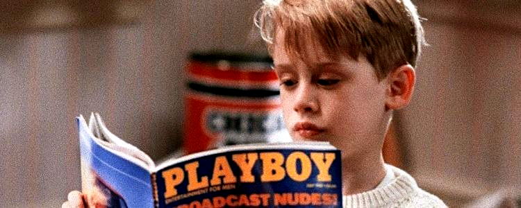 A vintage Playboy magazine cover. The title 'Playboy' is prominently displayed in yellow text against a black background, with the tagline 'For adults only' written below it in smaller white letters. A male model is featured on the front of the magazine, holding a book while looking directly at the viewer. He is shirtless and has short hair. The overall style of the image is reminiscent of mid-20th century American pop culture, with a retro aesthetic typical of that era's fashion and design.