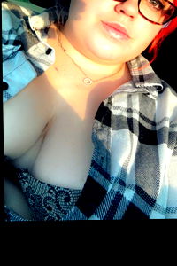 A beautiful woman in a black dress and red hair. She's wearing glasses and has a tattoo on her left wrist. OnlyFans model from Kansas.