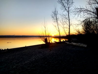 Experience the tranquil beauty of a sunset over Lake Portland, where the sky meets the water at this picturesque location. A peaceful scene featuring a clear sky, a calm lake reflecting the warm hues of the sunset, and trees lining the shore. The perfect moment to unwind and appreciate nature's splendor.