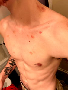 In this image, Onlyfans model Mack D shares his fitness journey. He is standing shirtless in a room with a gaming setup in the background, showcasing his well-defined muscles. The transformation from before to after speaks volumes about dedication and hard work.