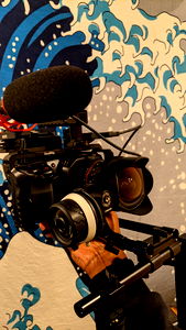 An experienced filmmaker, captured during the production of a project. Using professional equipment like cameras and boom microphones, they are ready to capture every detail in their shots.