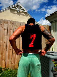 The image captures a young man, approximately 31 years old, showcasing his well-developed muscles. His chiseled physique is on full display, and his bare chest and trunk emphasize his muscular definition, suggesting a disciplined fitness regime. His confident expression adds a level of intensity to the image, with his face being the focus, centrally positioned within the frame. The man is shirtless, further highlighting his lean, muscular build. His strong facial features, including his eyes and jawline, are clearly visible, adding to the overall masculine appeal of the photograph. This image seems to celebrate physical fitness and masculine aesthetics. The man's expression and physique suggest strength, determination, and discipline. It seems like an ideal image for fitness or health-related content, or any context where showcasing physical strength and masculinity is the aim. The overall mood created by this image is one of intensity, power, and determination.