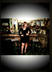 Malenia Eckerdan, a prominent OnlyFans model, is seen in this image showcasing her stunning figure and captivating style. She stands confidently against a mirror in an elegant red dress that accentuates her curves beautifully. Her posture exudes confidence and self-assurance.